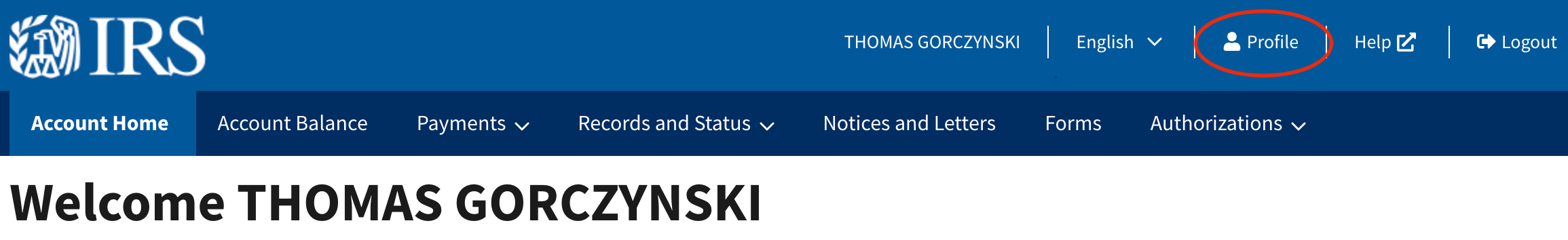 Once inside the Individual Online Account, select “Profile” in the upper right: