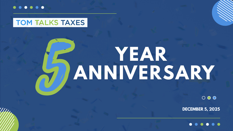 Sign Up Today: Tom Talks Taxes 5th Anniversary Event!